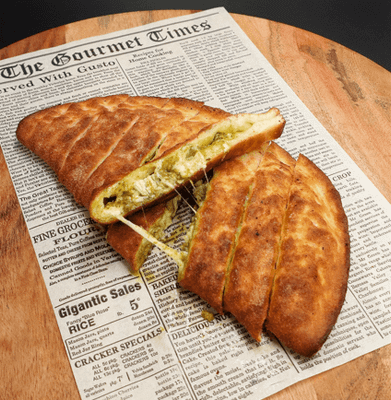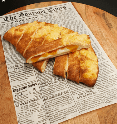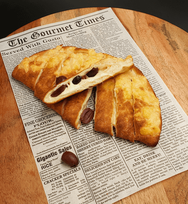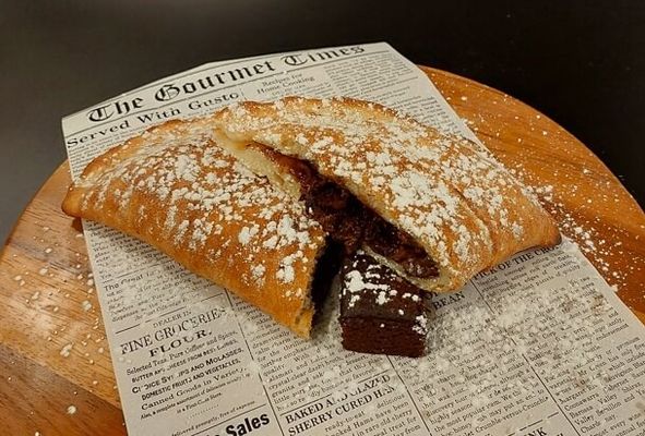 Our chocolate brownies covered in rich, chocolatey Nutella and cream. Baked in a crunchy calzone and dusted with powdered sugar.