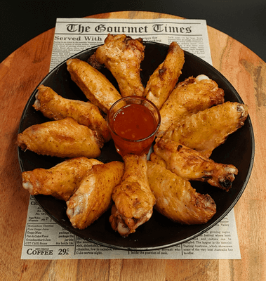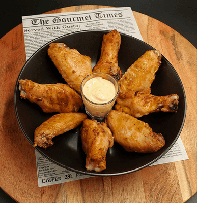 8 oven-roasted chicken wings with a complimentary dipping pot of your choice.