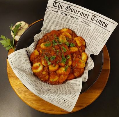 Gnocchi on a rich tomato pasta sauce with premium 85cl beef mince, fresh basil, crushed garlic, freshly diced tomatoes and herbs. Garnished with fresh parsley.