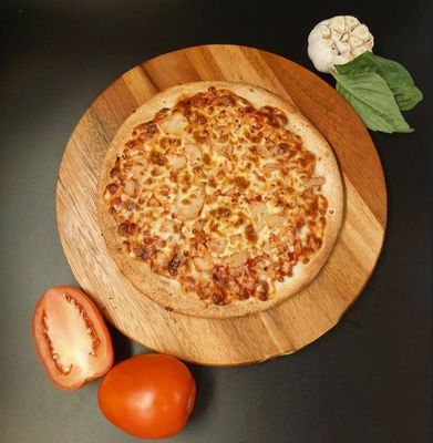 A vindaloo and pizza sauce fused base with fresh mushrooms, Spanish red onion, roasted red capsicum, juicy pineapple and melted mozzarella cheese. Garnished with ribbons of creamy yoghurt and fresh parsley.