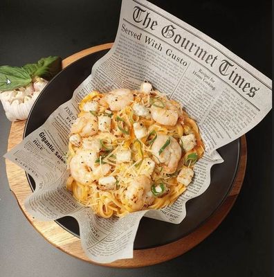 Linguine with a cream and tomato fused pasta sauce with juicy prawns, tender slices of calamari, crushed garlic, fresh shallots, butter and parmesan cheese.
